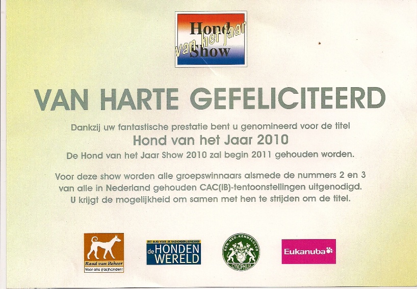 With this groupplacement, " Stitch " is invited for the Top Dog of the Year Show 2010!!!