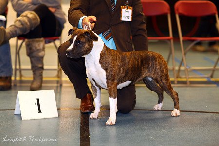 Ch Great Am-Staff's Good as Diamond won 1e place championclass, Best Female, CAC / CACIB and Best Opposite Sex!