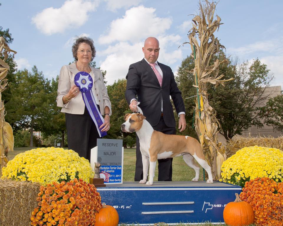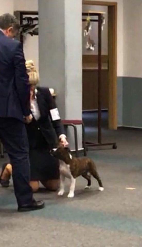 Ch. Carmichael's Liar Liar Pants on Fire won Best of Breed and later she won Best Bull Breed in Show under Ger & Laura Cox.
